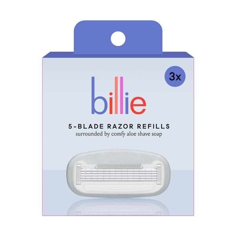 Need refill blades for your Billie razor handle? Our refills feature 5 sharp blades wrapped in a lubricating strip with a touch of aloe and a curve-hugging pivoting head.