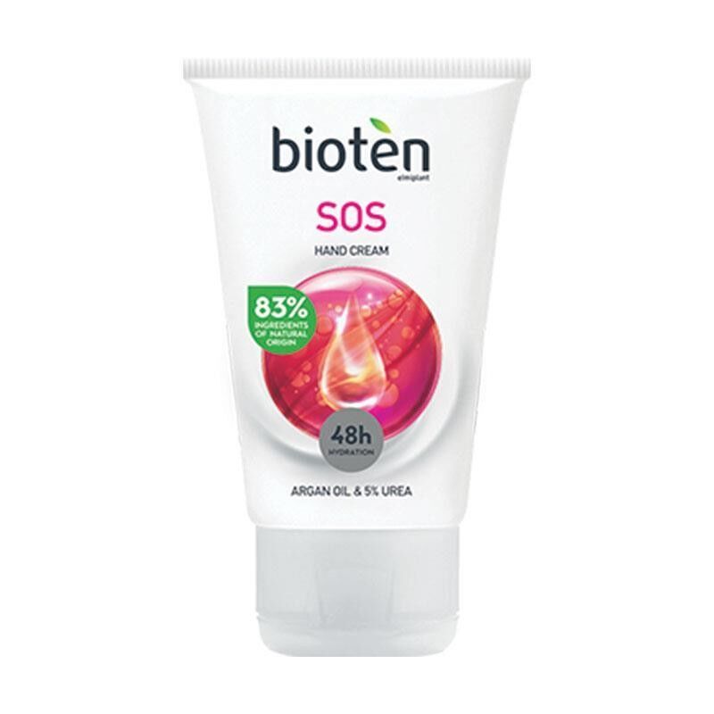 Bioten SOS Moisturizing Hand Cream relieves immediately chapped hands thanks to its formula enriched with 100% natural ingredients. Sos Hand cream is enriched with 100% natural Argan oil, that protects your skin and with 5% UREA that intensively rehydrates very dry skin leaving a comfortable feeling. NUTRIMOIST 48H, an advanced moisturizing complex, offers immediate moisturizing and prolongs skin hydration up to 48H.