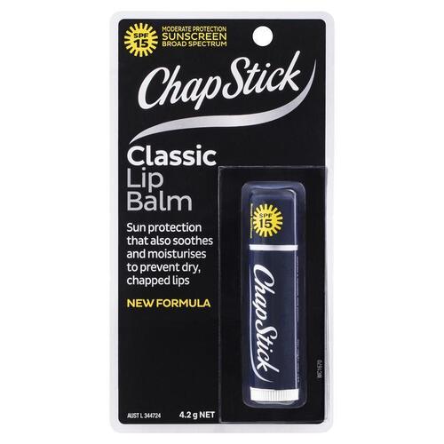 Chapstick Classic with SPF 15 broad spectrum protection against sun damage, and moisturising action to keep lips looking and feeling great every day! Chapstick Classic moisturises, soothes and prevents dry, chapped lips.Size: 4.2g