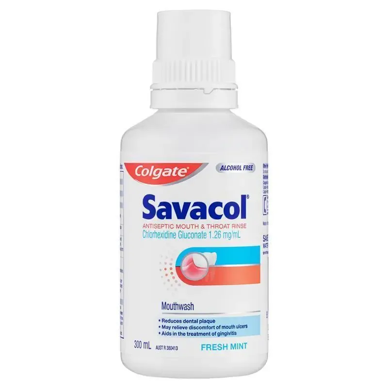 Colgate Savacol Fresh Mint is an antiseptic mouth & throat rinse clinically proven to assist in the treatment of gingivitis, with a fresh mint flavour. The antibacterial ingredient in Colgate Savacol mouthwash works to reduce the formation of plaque and aid the treatment of gingivitis.