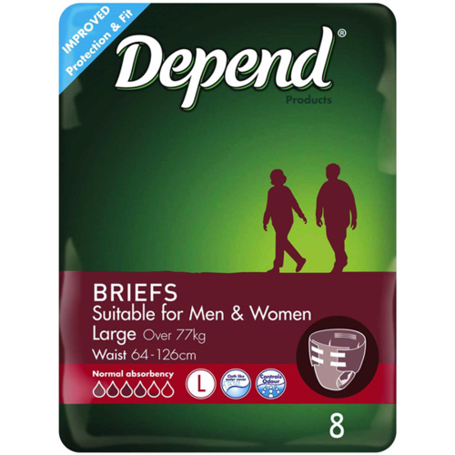 Depend Fitted Brief Large (Waist 89-124Cm). Directions Person standing: