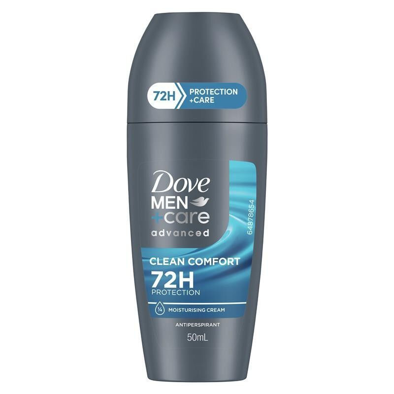 If you're looking for a powerful deodorant for men that works as long and hard as you do, give Dove Men+Care Advanced Clean Comfort Antiperspirant Deodorant Roll On a try. It helps you stay fresh and dry no matter what comes your way, delivering 72 hours of powerful sweat and odour protection. Our alcohol-free formula contains ? moisturising cream to strengthen your skin against underarm rash and chafing, keeping your underarms comfortable all day. Tough on sweat, not on skin, this roll on deodorant leaves a subtle, clean scent that keeps you feeling fresh for longer. With better protection and care, you'll get the increased confidence you need to feel your best.Dove Men+Care celebrates a new definition of strength: one with care at its centre. Real strength is shown through the care you give to the people that matter - and that includes you.