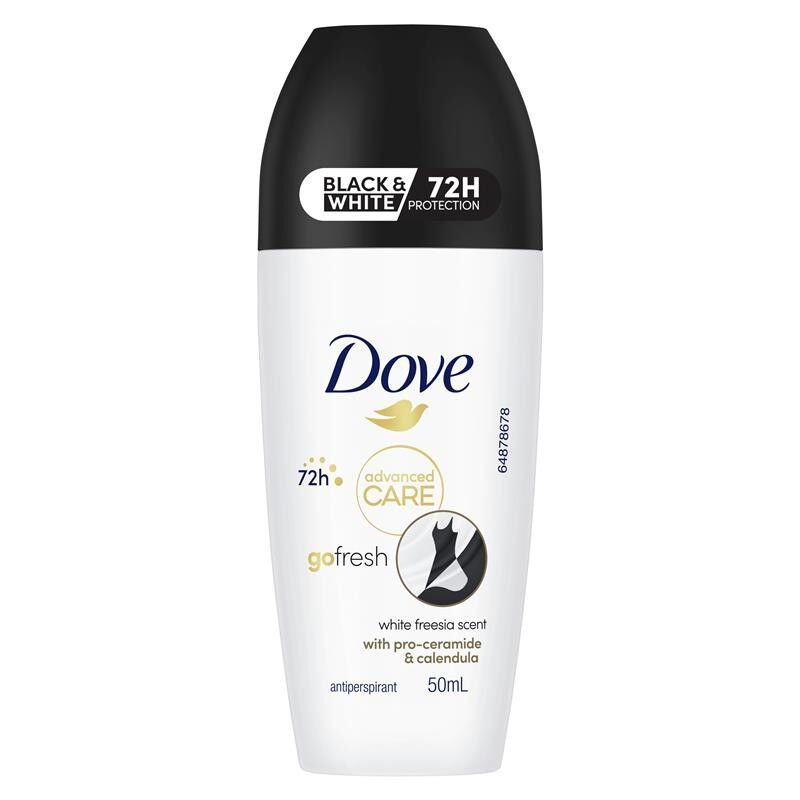 * Dove Advanced Care Black & White Antiperspirant Deodorant Roll On provides up to 72 hours of sweat protection whilst providing effective skin care* This anti-stain deodorant provides invisible antiperspirant protection, ensuring reduced white marks on your clothes