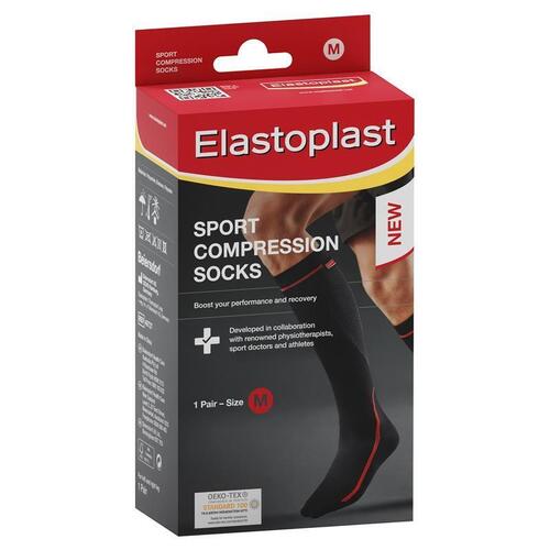 Elastoplast Sport Compression Socks Medium 1 Pair is a sport compression socks that boost your performance and recovery. Developed in collaboration with renowned physiotherapists, sport doctors and athletes.