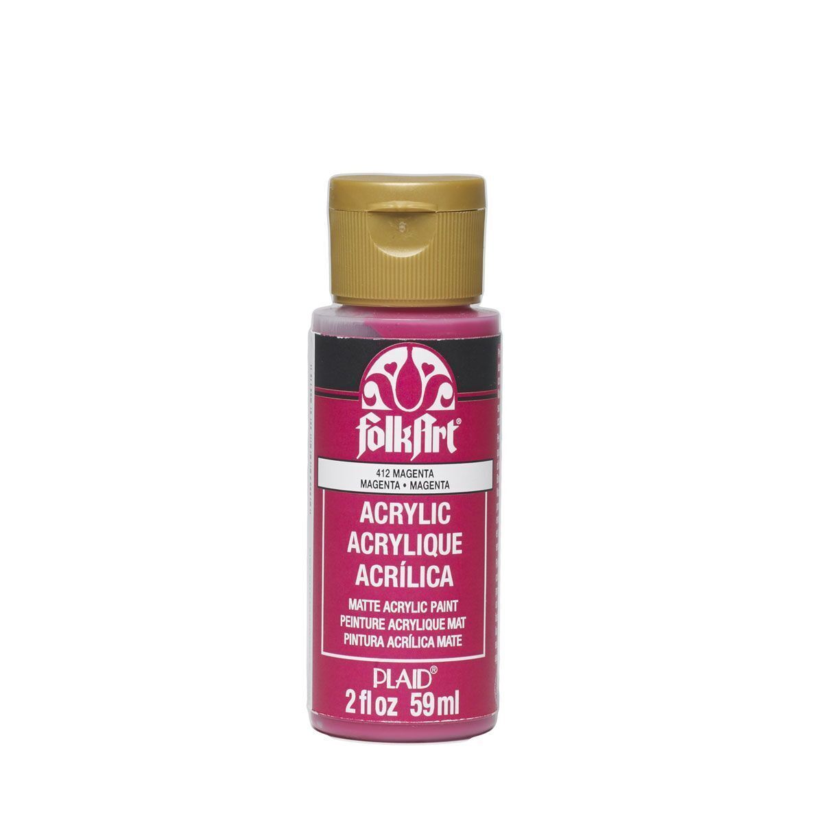FolkArt Acrylic Paint is a premium, artist-quality acrylic paint, perfect for all your DIY decorative craft paint and home decor projects. Its rich, thick, creamy texture ensures smooth brush ability for exceptional blending, highlighting and shading and unmatched versatility for stroke work, stencilling and other design techniques on a wide variety of porous surfaces, such as wood, canvas, tin, terracotta, fabric, and Paper Mache. - Capacity: 59ml (2oz) - Dries to a matte finish - Water-based - AP-certified non-toxic - Indoor use only - Easy clean-up while wet with soap and water
