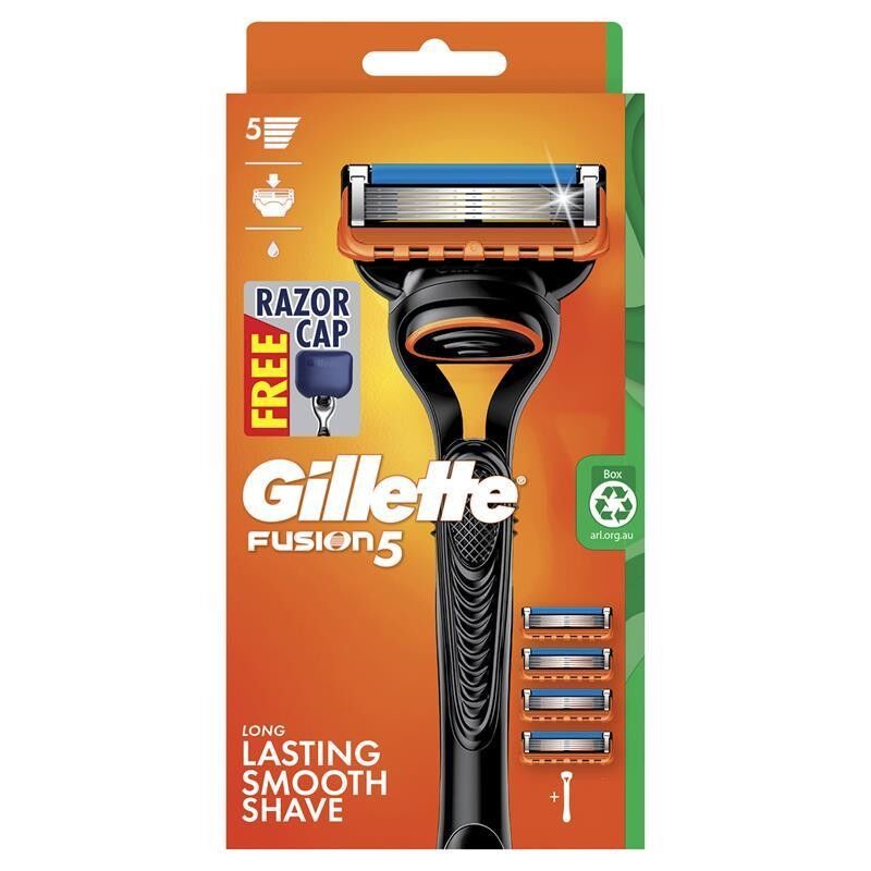 Gillette Fusion5 Razor Handle + 4 Cartridge+ Razor Cap, Shave Care