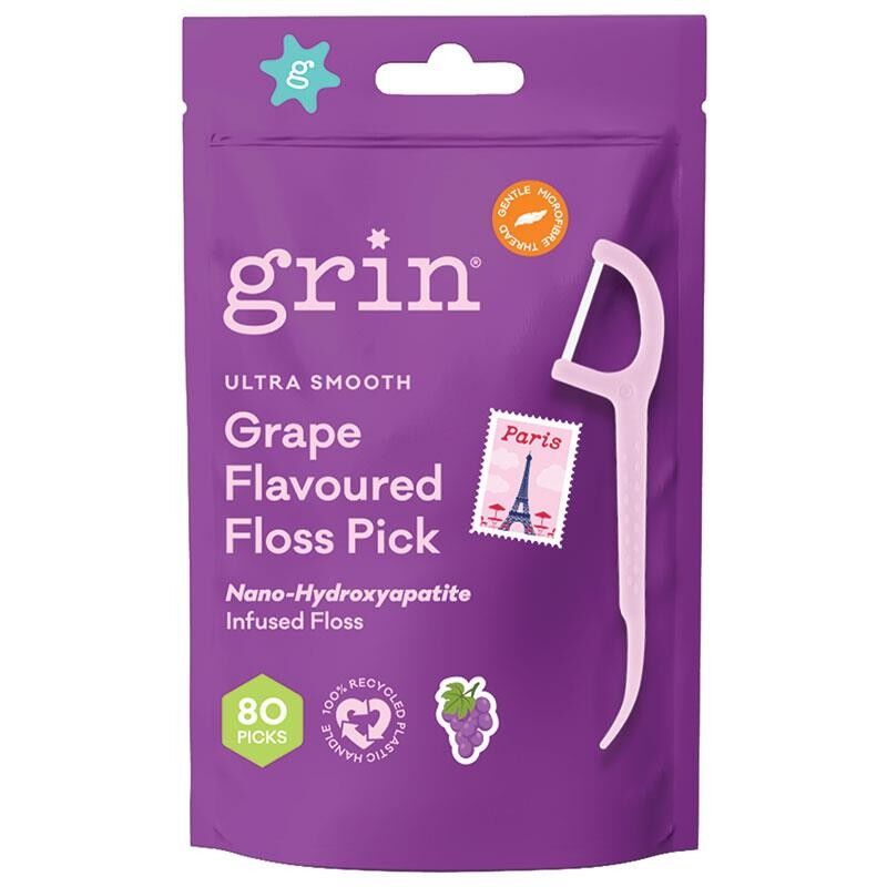 Grin Ultra Smooth Grape Flavoured Floss Picks 80 Pack