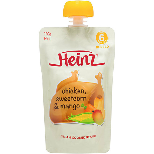 Vegetables, Water, Mango (15%), Chicken (10%), Rice, Cornflour, Coconut (1.0%), Spice.
