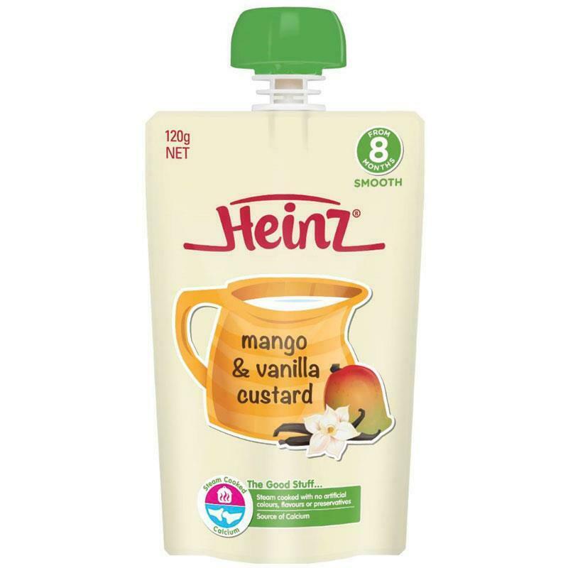 Heinz Mango Vanilla Custard Pouch 120g 8m+ Baby Food Travel Easy