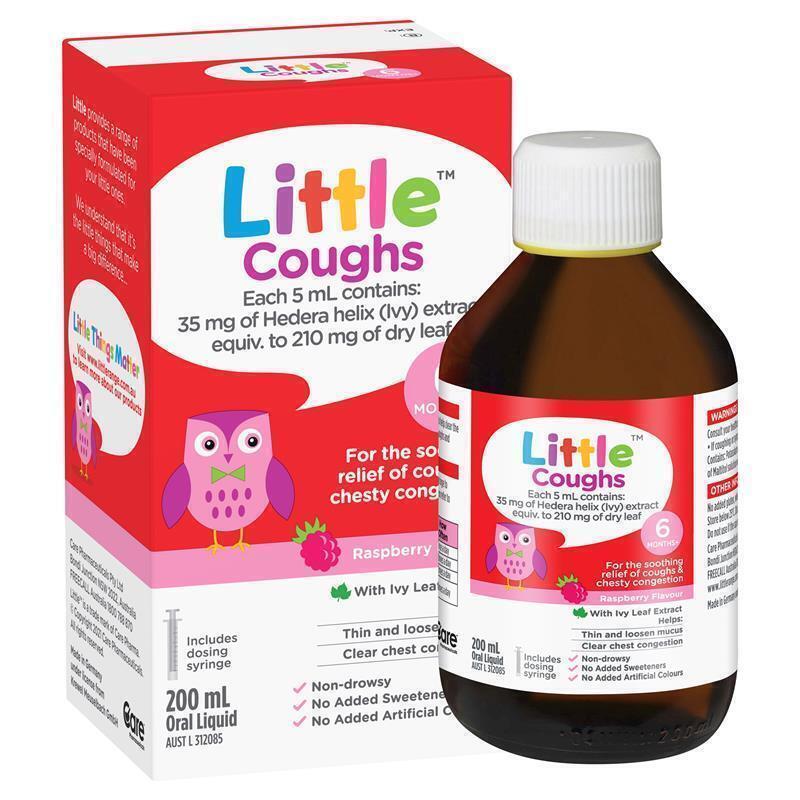 Little Coughs Oral Liquid Raspberry flavour is a pleasant tasting cough syrup based on an extract of ivy leaf.Uses:
