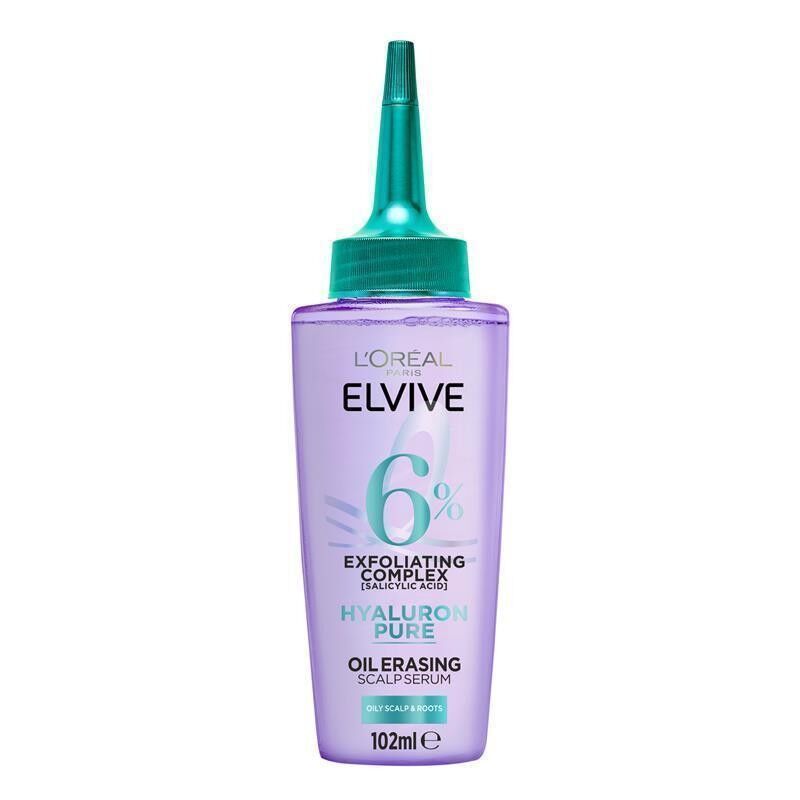Discover the L'Oreal Paris Elvive Hyaluron Pure Oil Erasing Scalp Serum. Our formula, powered by our Exfoliating Complex [With Salicylic Acid] penetrates the scalp and acts in perfect sync with our shampoo to bring our 1st ever total scalp cleanse.