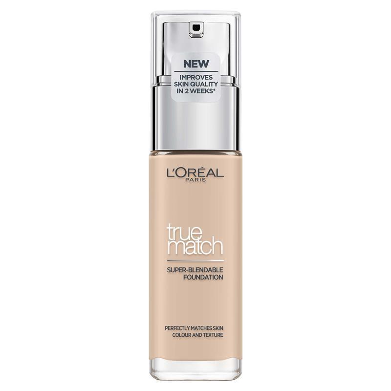 Flawless natural coverage. L'Oreal Paris True Match Foundation is a super-blendable liquid foundation that perfectly matches the colour and texture of your skin. Improved skin quality in 2 weeks*. Now with Hyaluronic Acid.