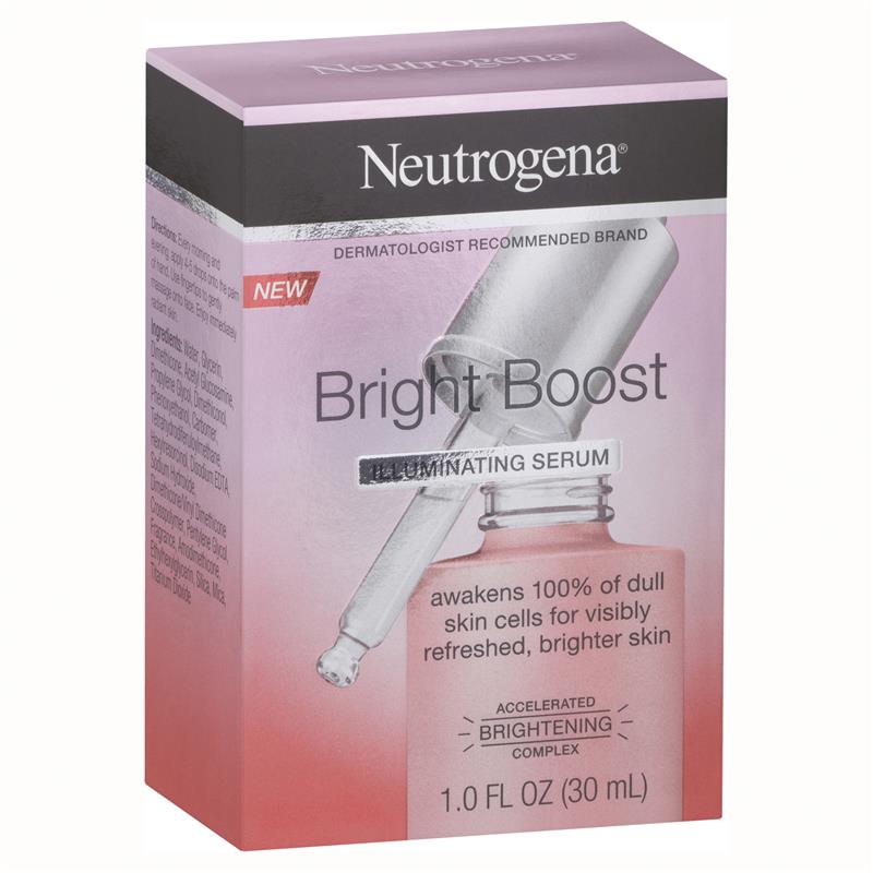 Neutrogena Bright Boost Illuminating Serum awakens 100% of dull skin cells for visibly refreshed, instantly brighter skin.