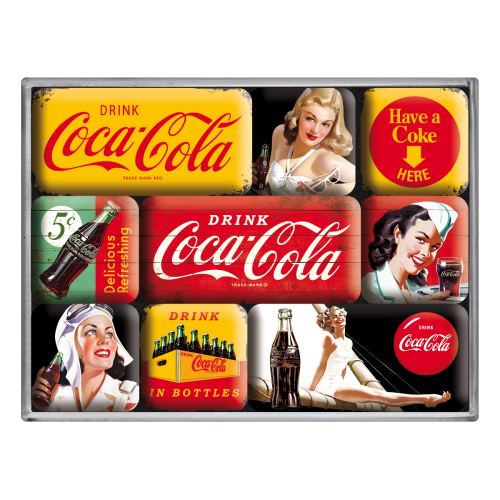 Nostalgic-Art 9pc Magnet Set Coca Cola Yellow/Red