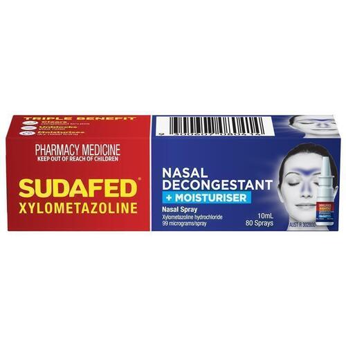 Sudafed Xylo Nasal Decongestant Spray unblocks your nose, clears nasal congestion and moisturises dry nasal lining. Sinus decongestant for sinusitis, colds, flu and hayfever. This nose spray contains Xylometazoline Hydrochloride for sinus relief.