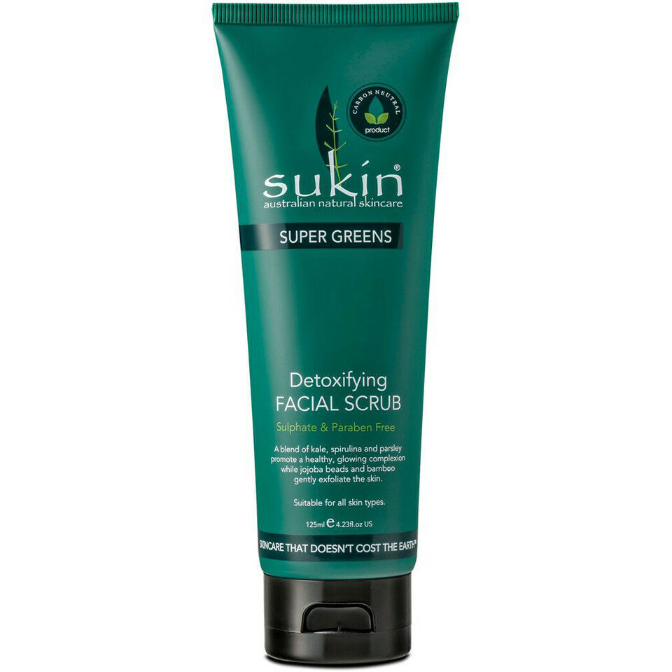 Sukin Super Greens Detoxifying Facial Scrub 125ml leaving skin feeling smooth