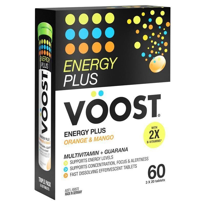 * Uses - Energy Plus Orange & Mango Helps:- Support Energy Production- Support Concentration, Focus and Alertness- Enhance Energy Levels- Increase Mental Endurance and Stamina- Relieve Tiredness and Fatigue- Support General Health and Wellbeing* With 2X B-vitamins*vs. previous Voost Energy Formulation